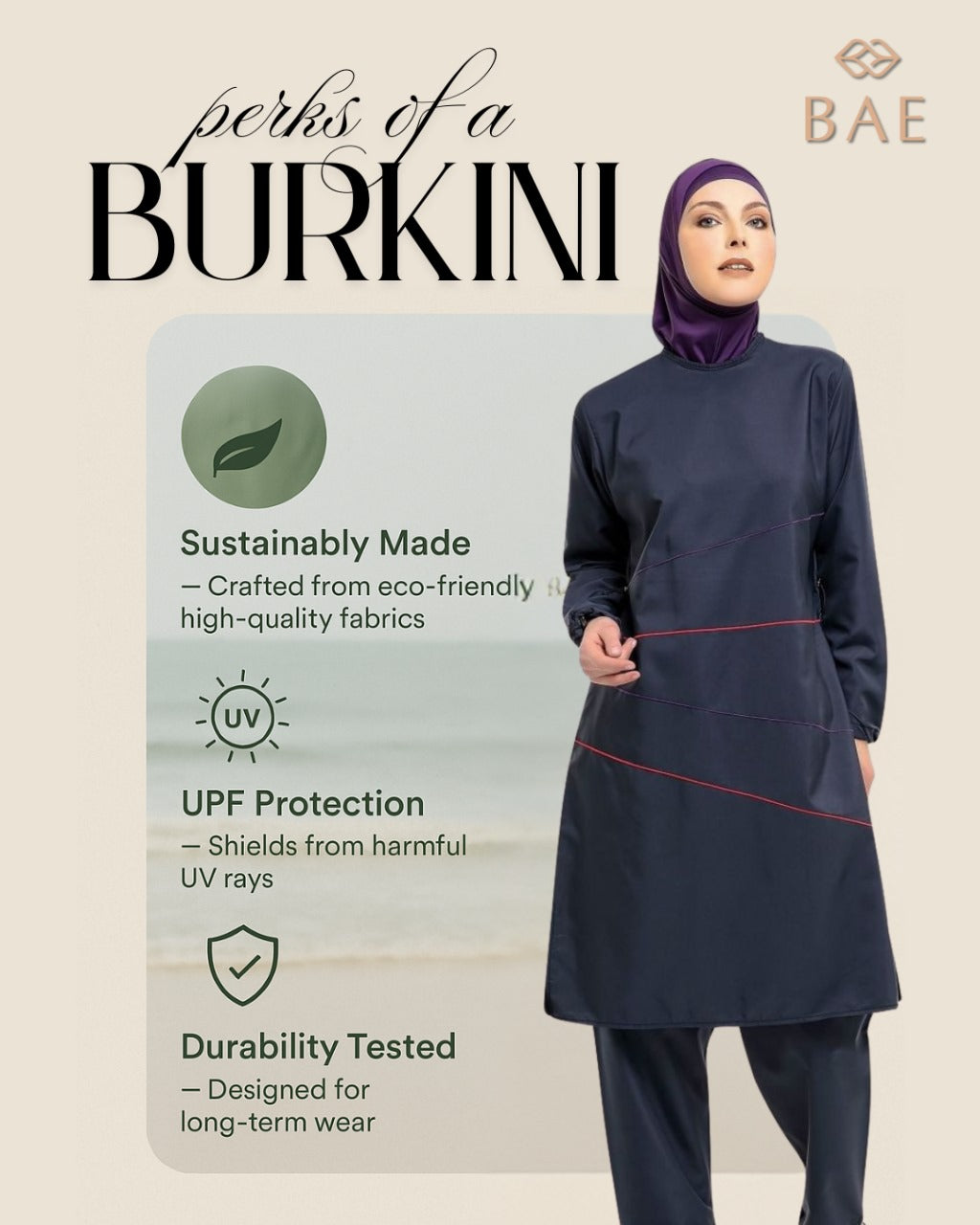 At BAE, we believe that every woman deserves to feel confident, comfortable, and covered—even at the beach. Our Burkinis are thoughtfully designed for the modern Muslim woman who refuses to compromise on style, performance, or faith.